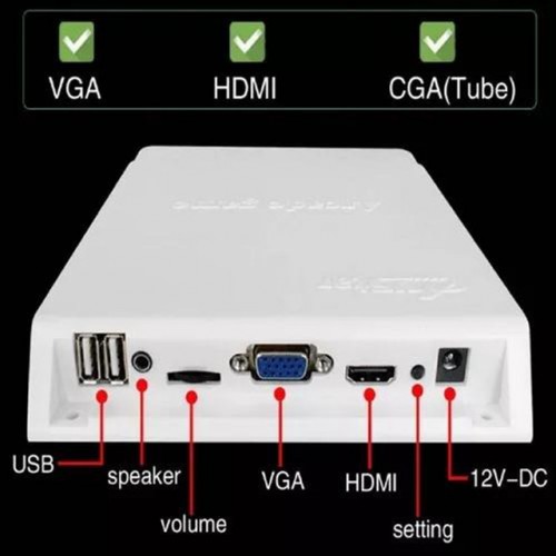 Funciona em Monitor de Tubo CRT CGA 15Hz (Pode não ser compatível com alguns modelos) Caso não Seja Compatível e a Tela fica embaçado em Seu Monitor de Tubo CRT Deverá Fazer os Ajustes ou Solicitar um Técnico para Fazer o procedimento. OBS: Caso não tenha está experiencia não tente pois mesmo pode Fechar imagem da Tela de Vez.